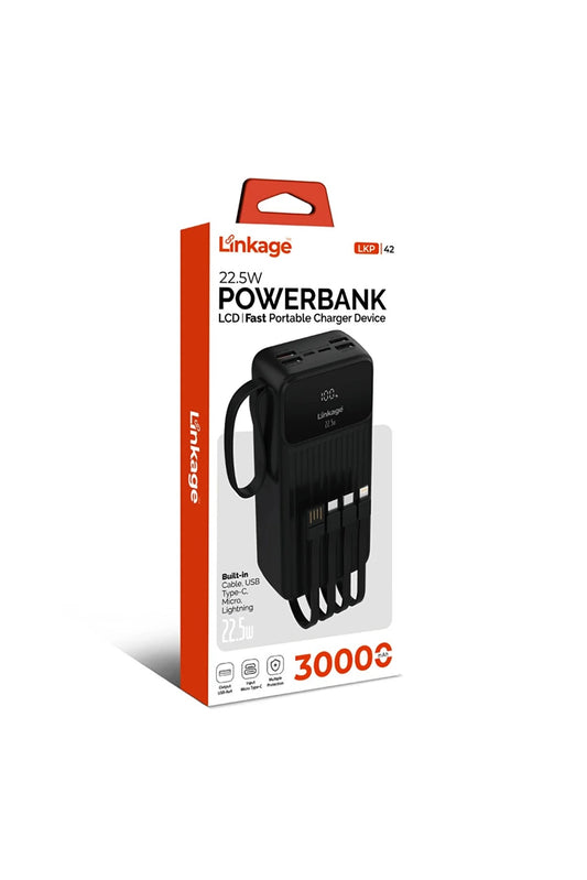 LİNKAGE 30.000mAh, Powerbank 4xUSB-A USB-C ve Mikro Girişli Dahili Kablolu 22.5W